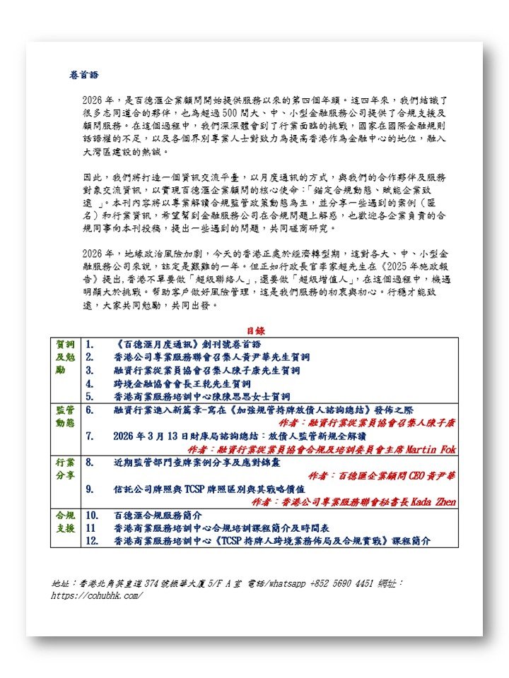 1.《百德滙月度通訊》創刊號卷首語